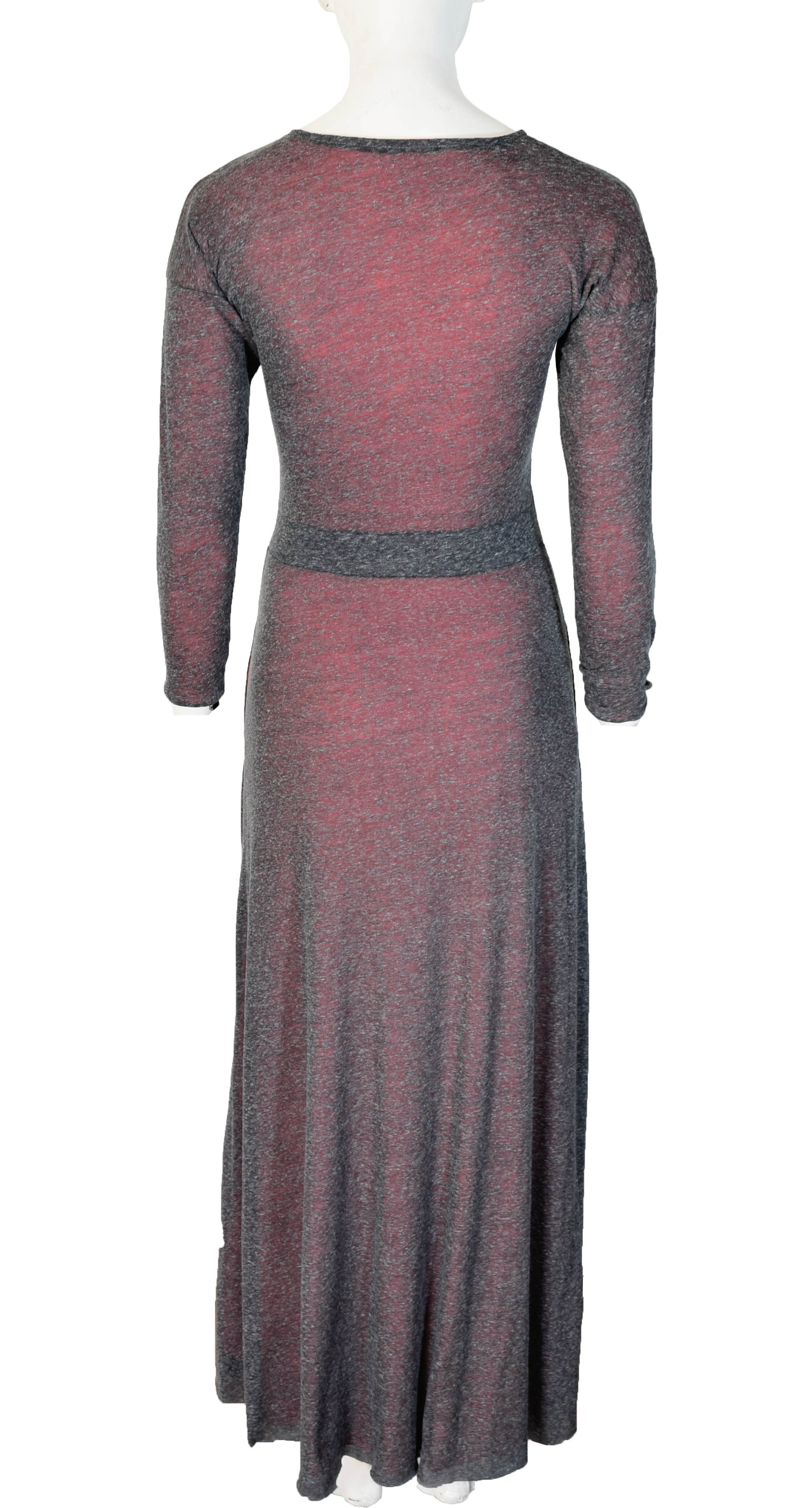 Vestido de punto circular, talle sencillo, cuello redondo, maga larga pegada, y falda en corte A con bolsillos en costados, reversible.